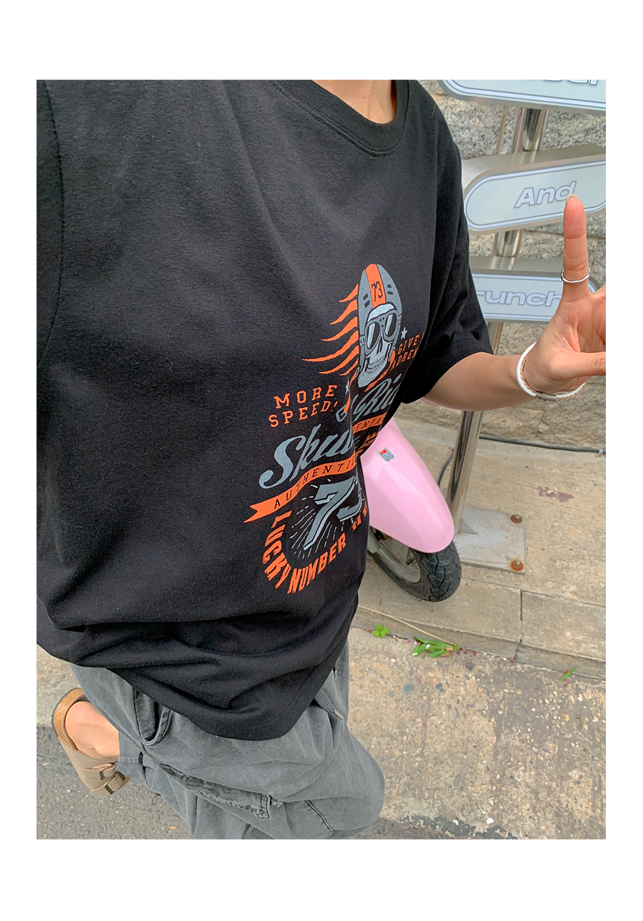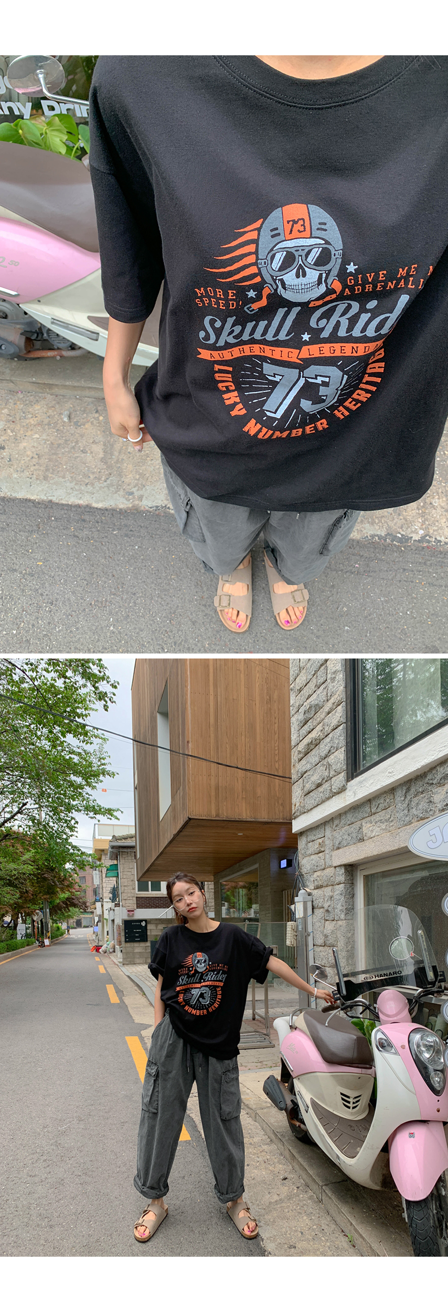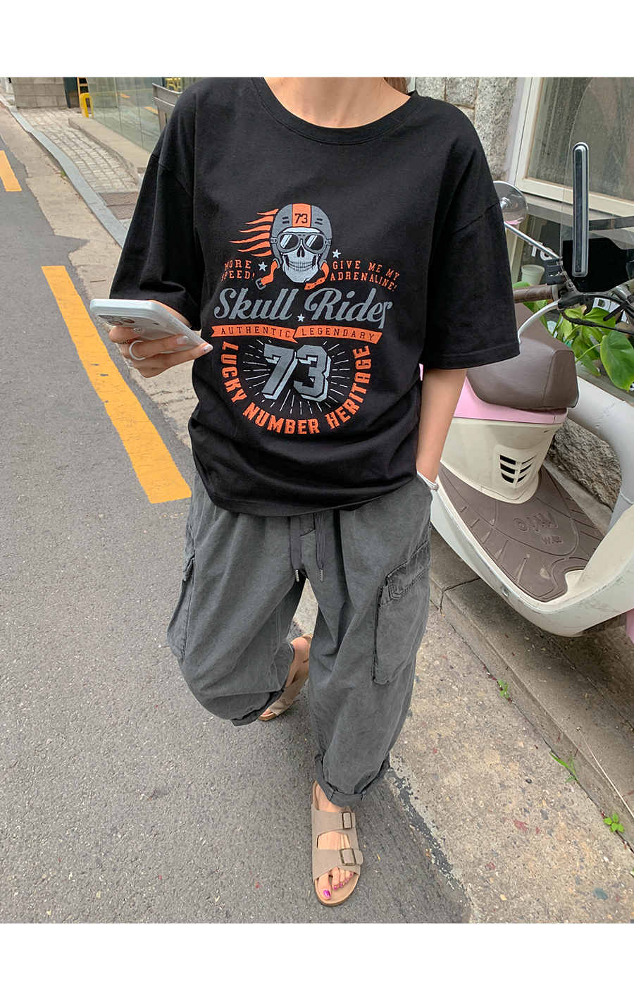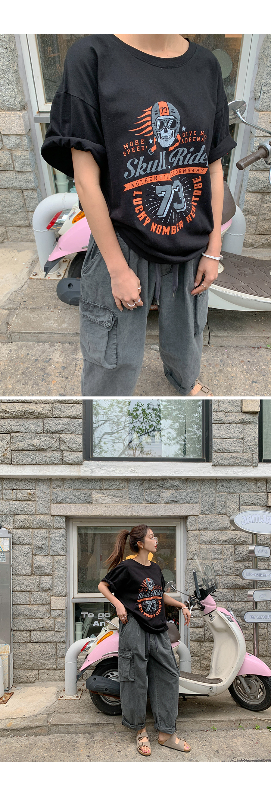 [Unisex] Skull Rider Print Loose Fit Short Sleeves T-shirt