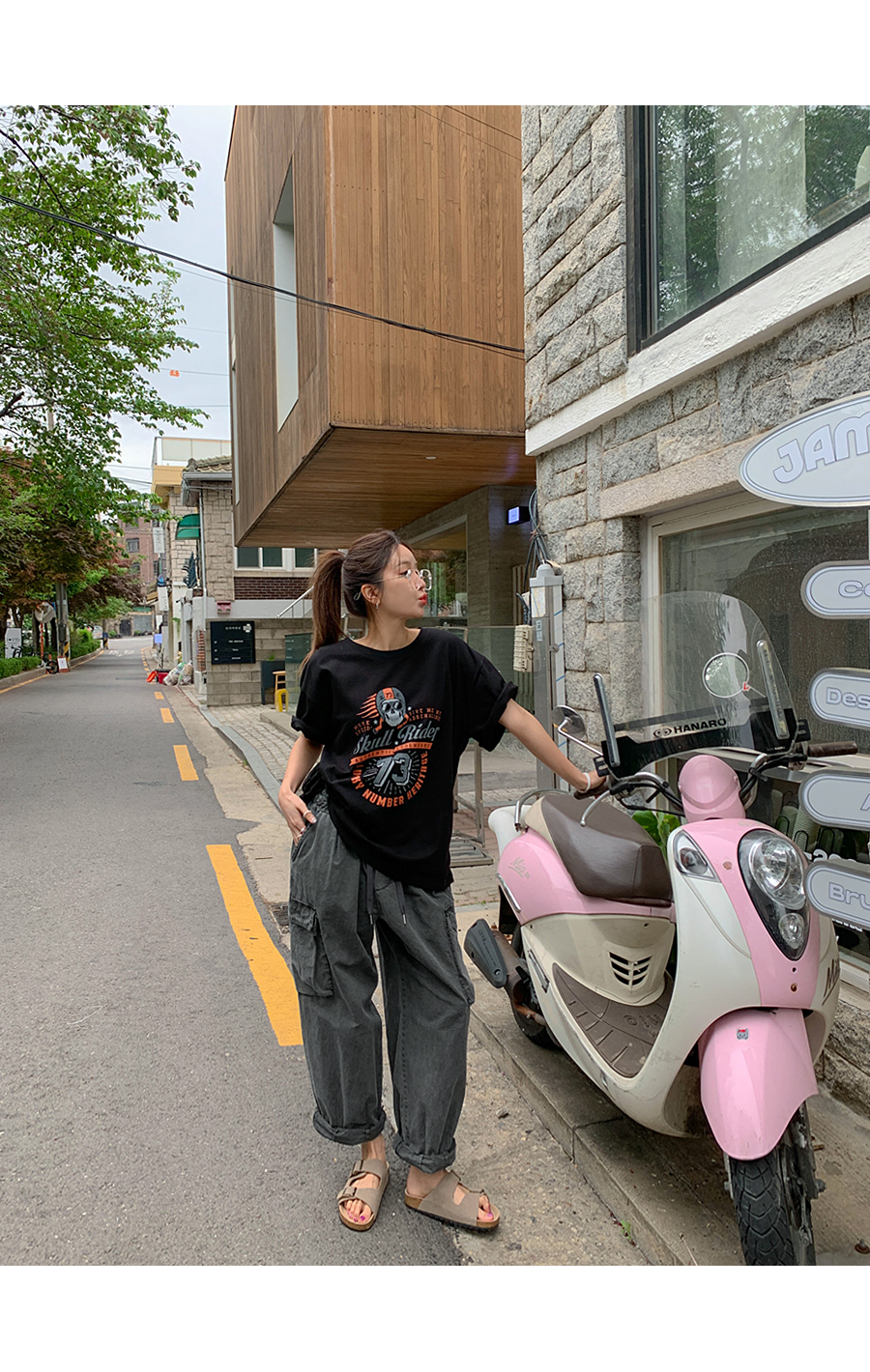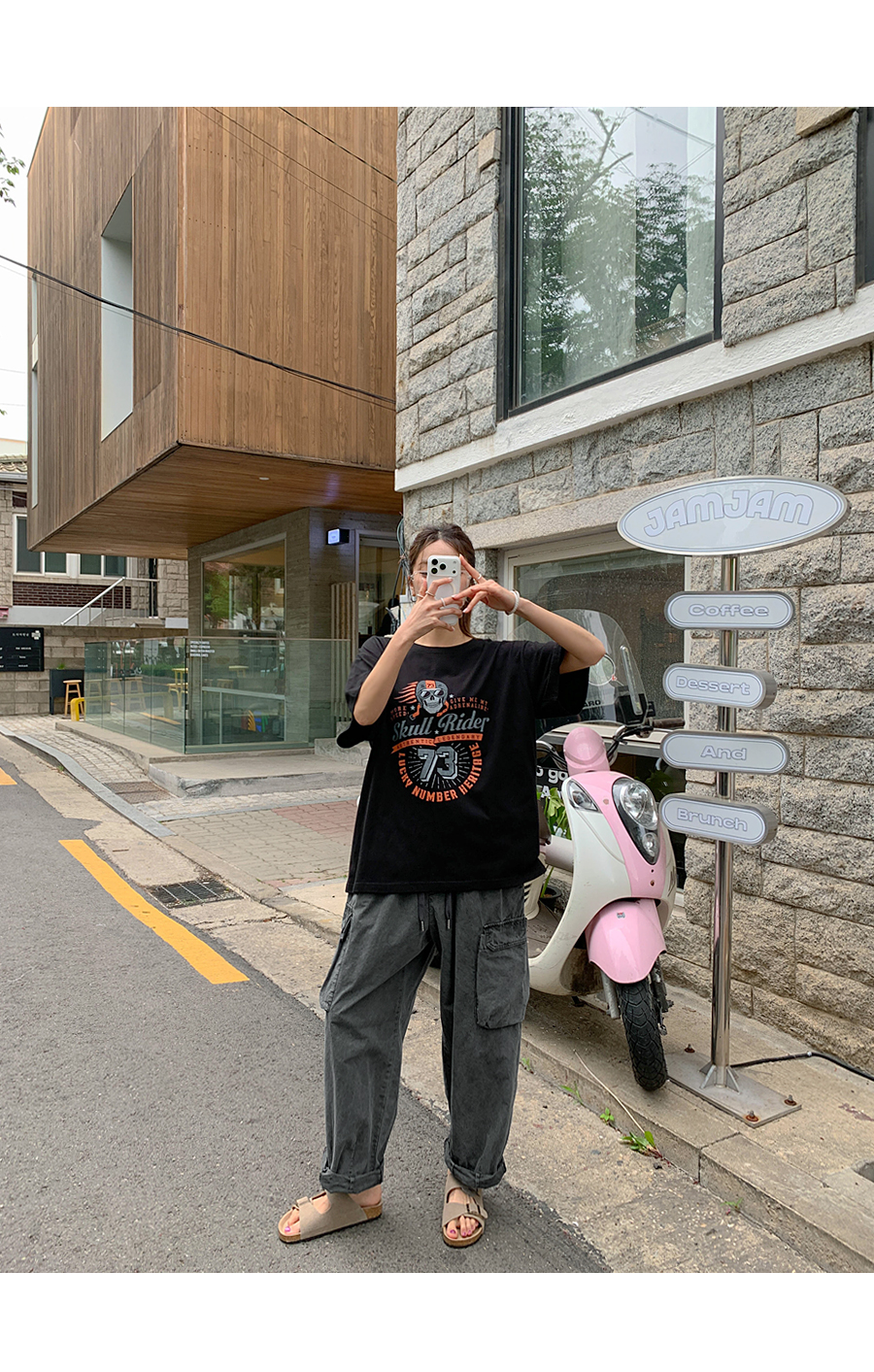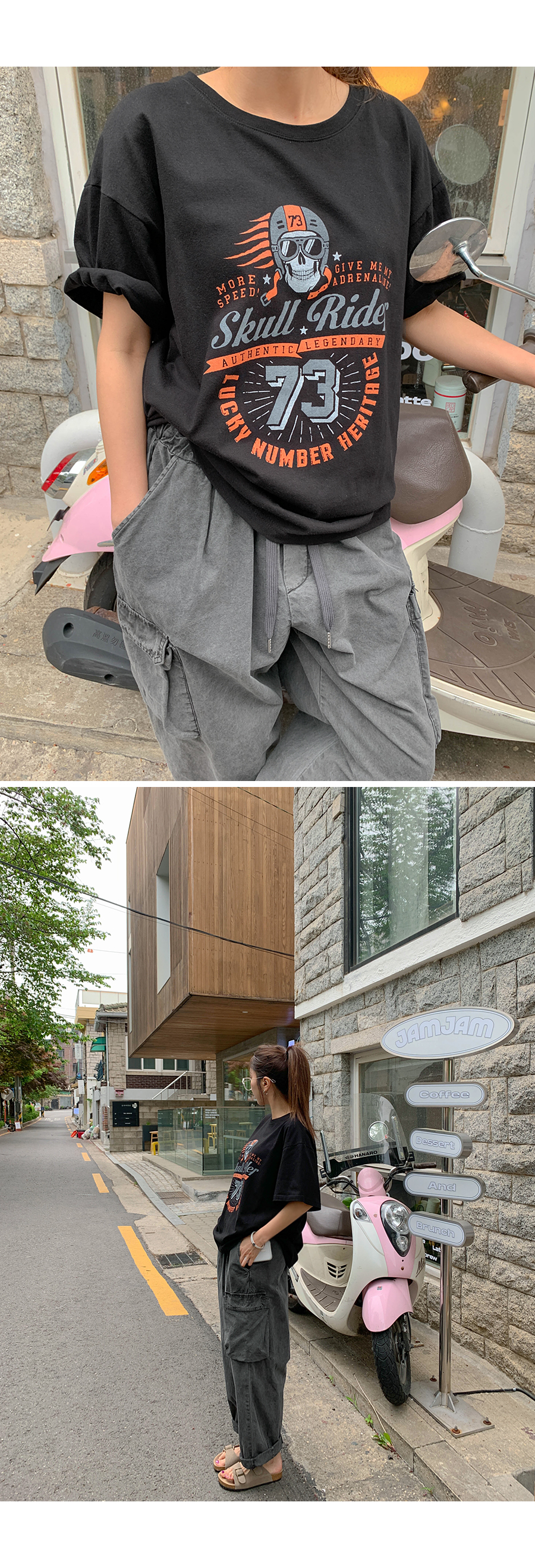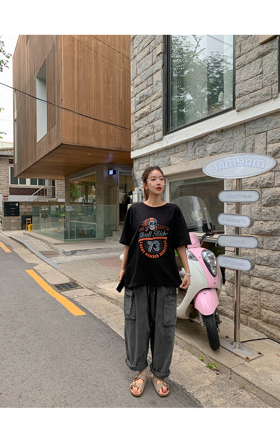 [Unisex] Skull Rider Print Loose Fit Short Sleeves T-shirt