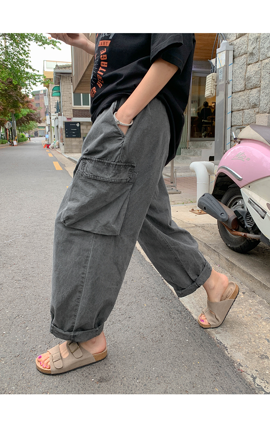 [Special Sale 20%] Crew Cargo Pocket Pigment Banding Balloon Baggy Pants