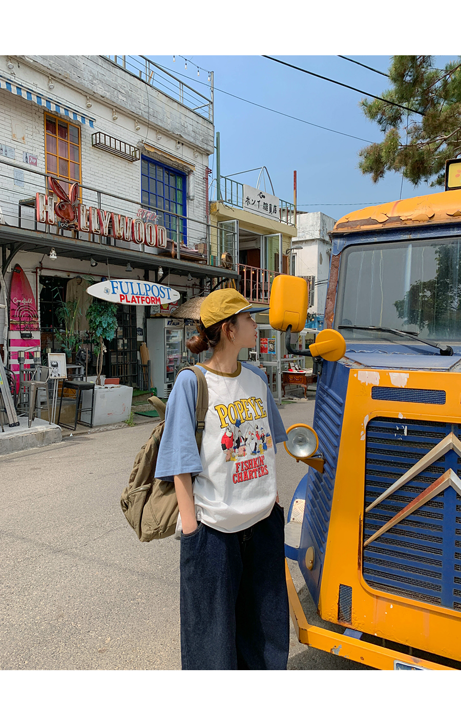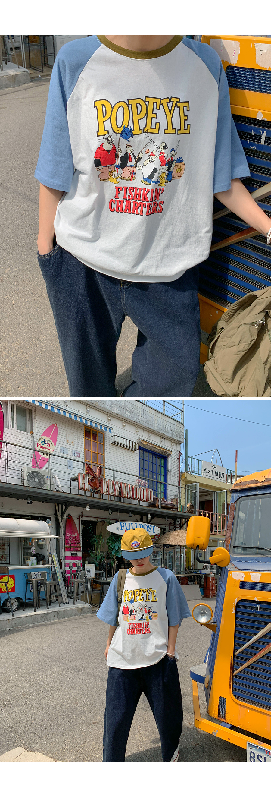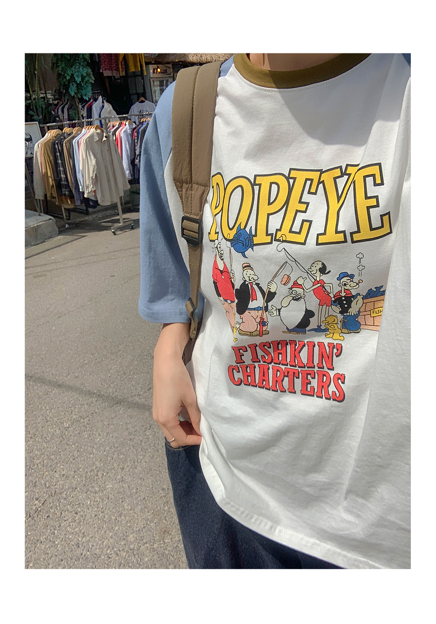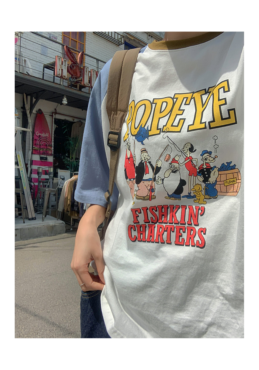 Popeye Print Color Combination Nagrang Short Sleeves T-shirt