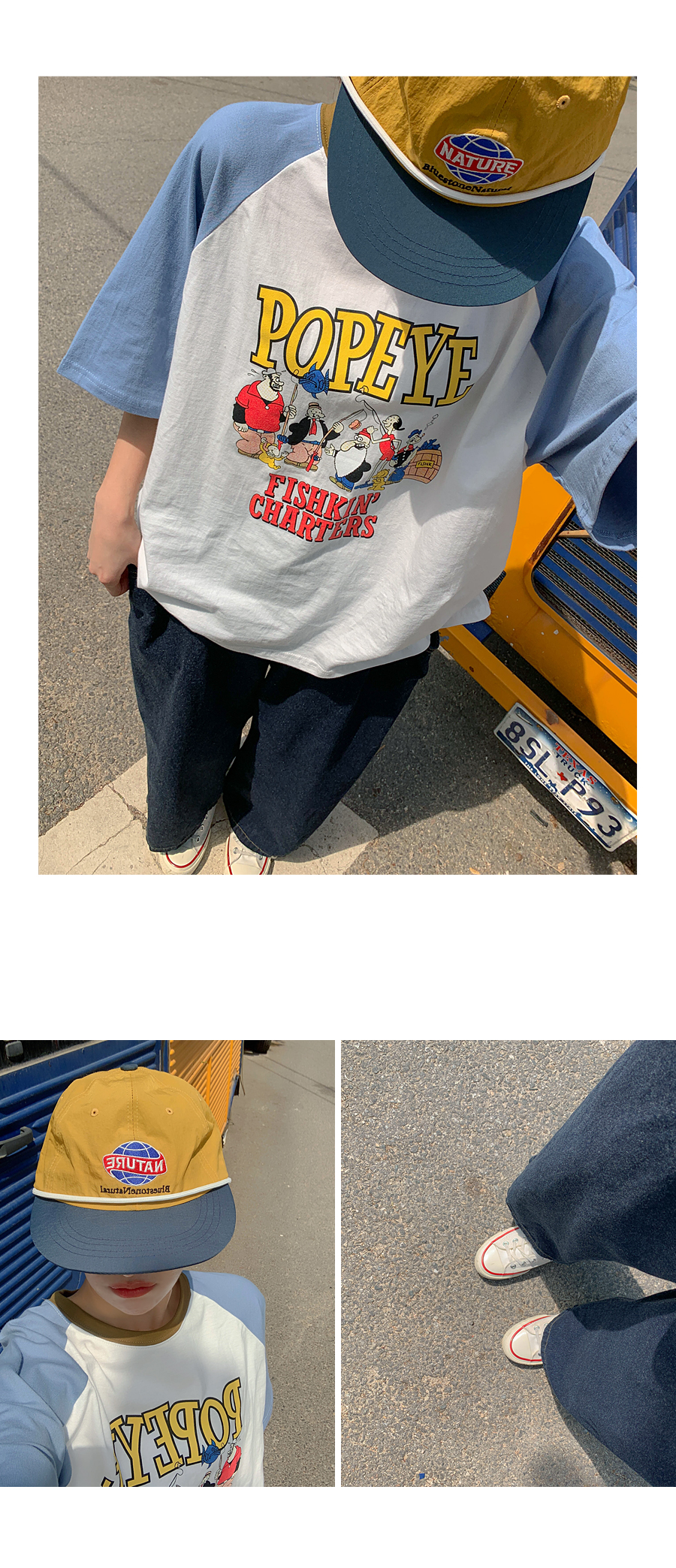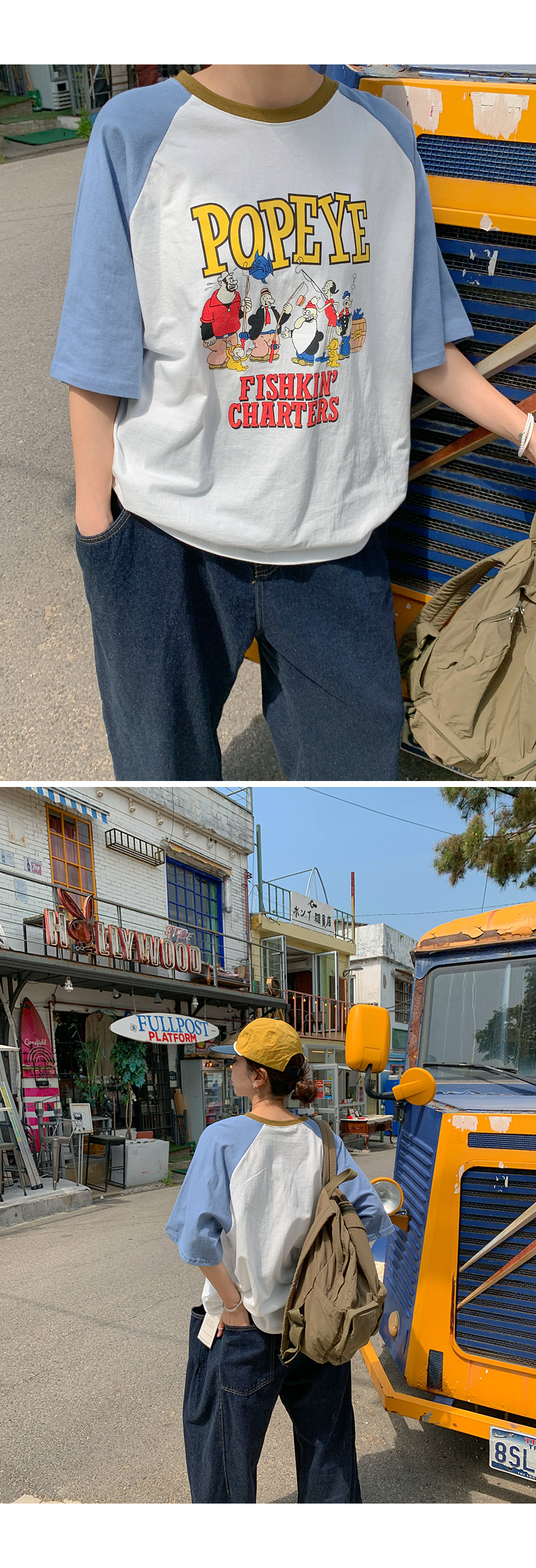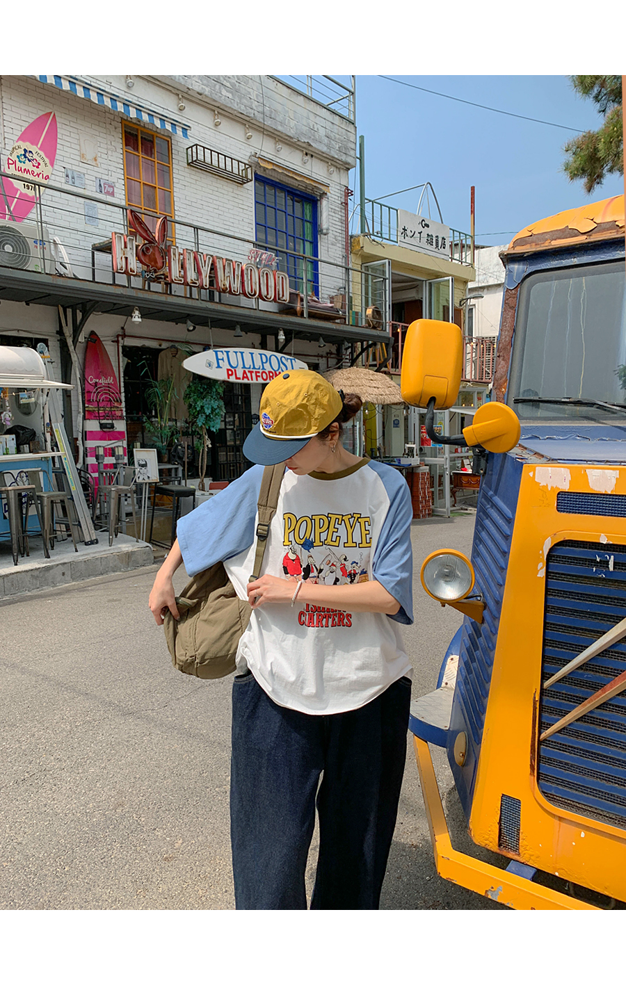 Popeye Print Color Combination Nagrang Short Sleeves T-shirt