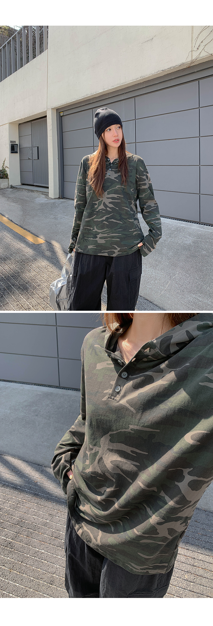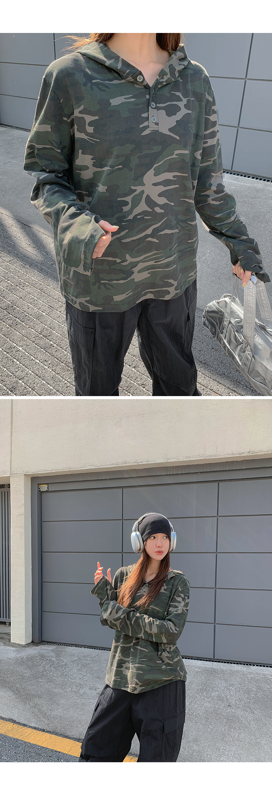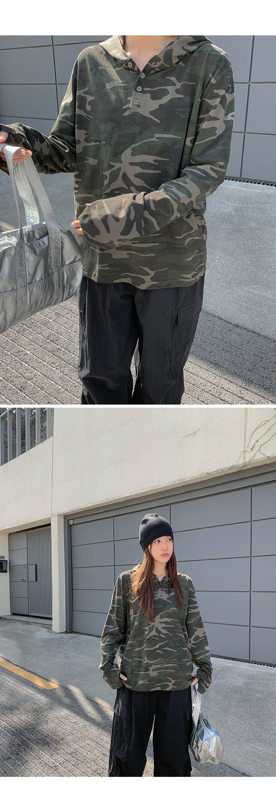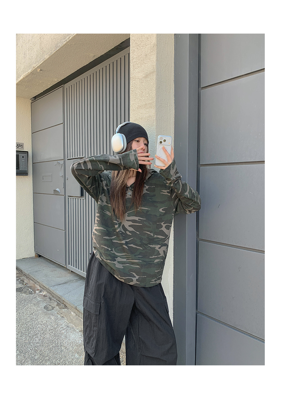 [Unisex] Betin Camo Henley Neck Long-sleeve Hoodie