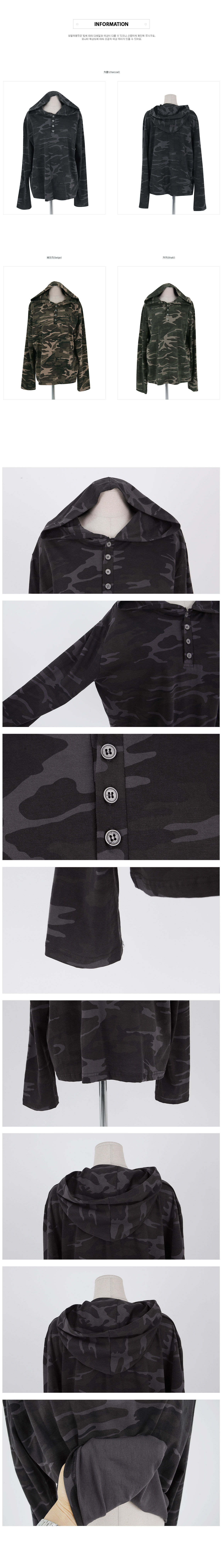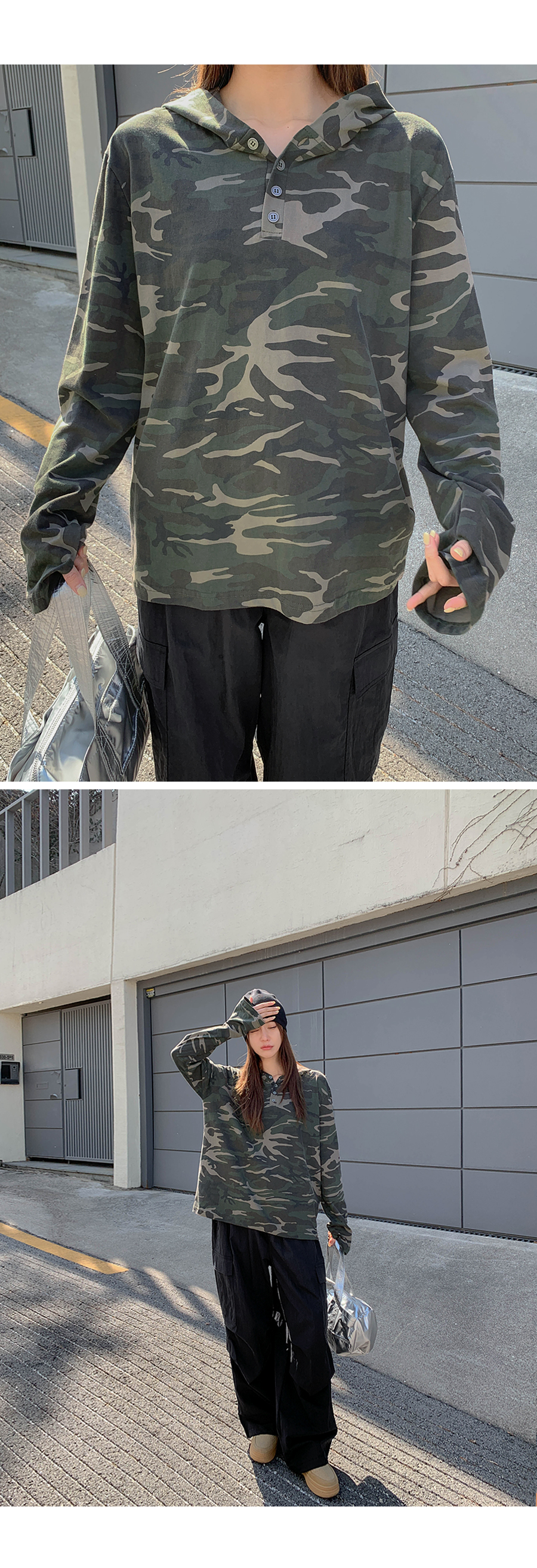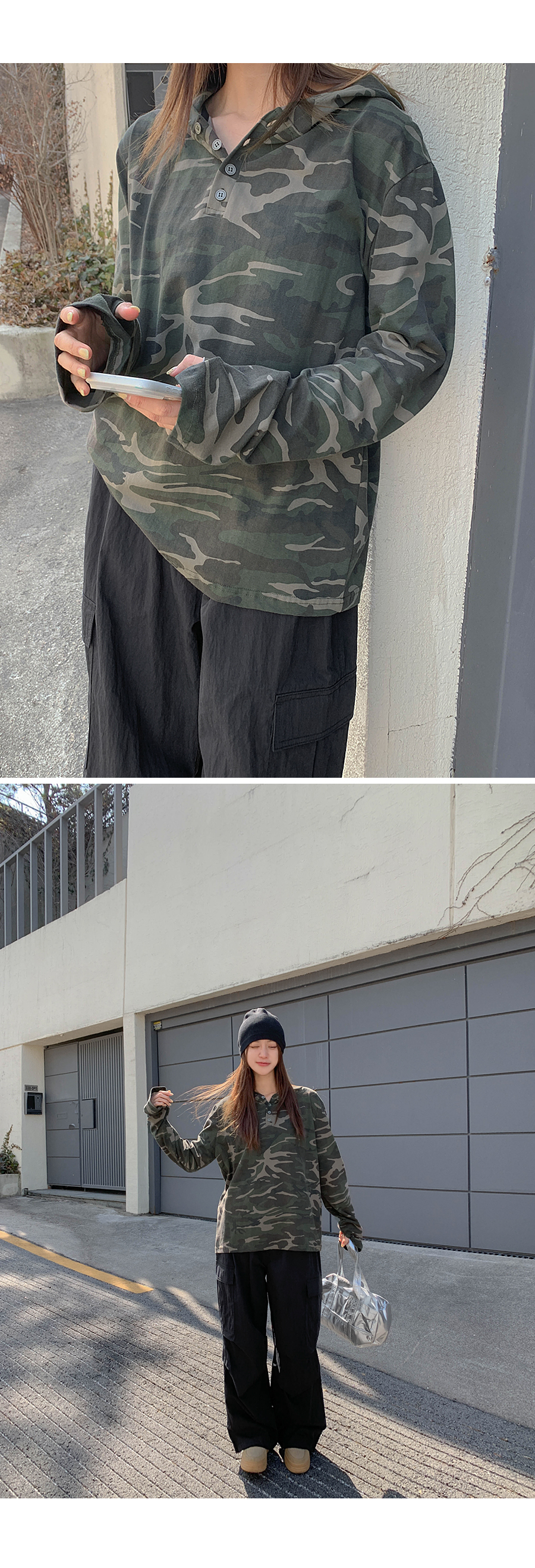 [Unisex] Betin Camo Henley Neck Long-sleeve Hoodie