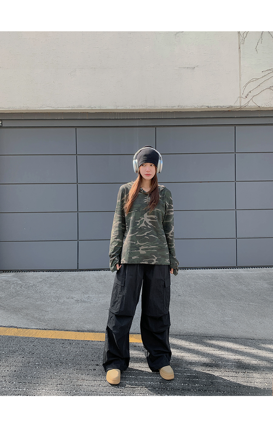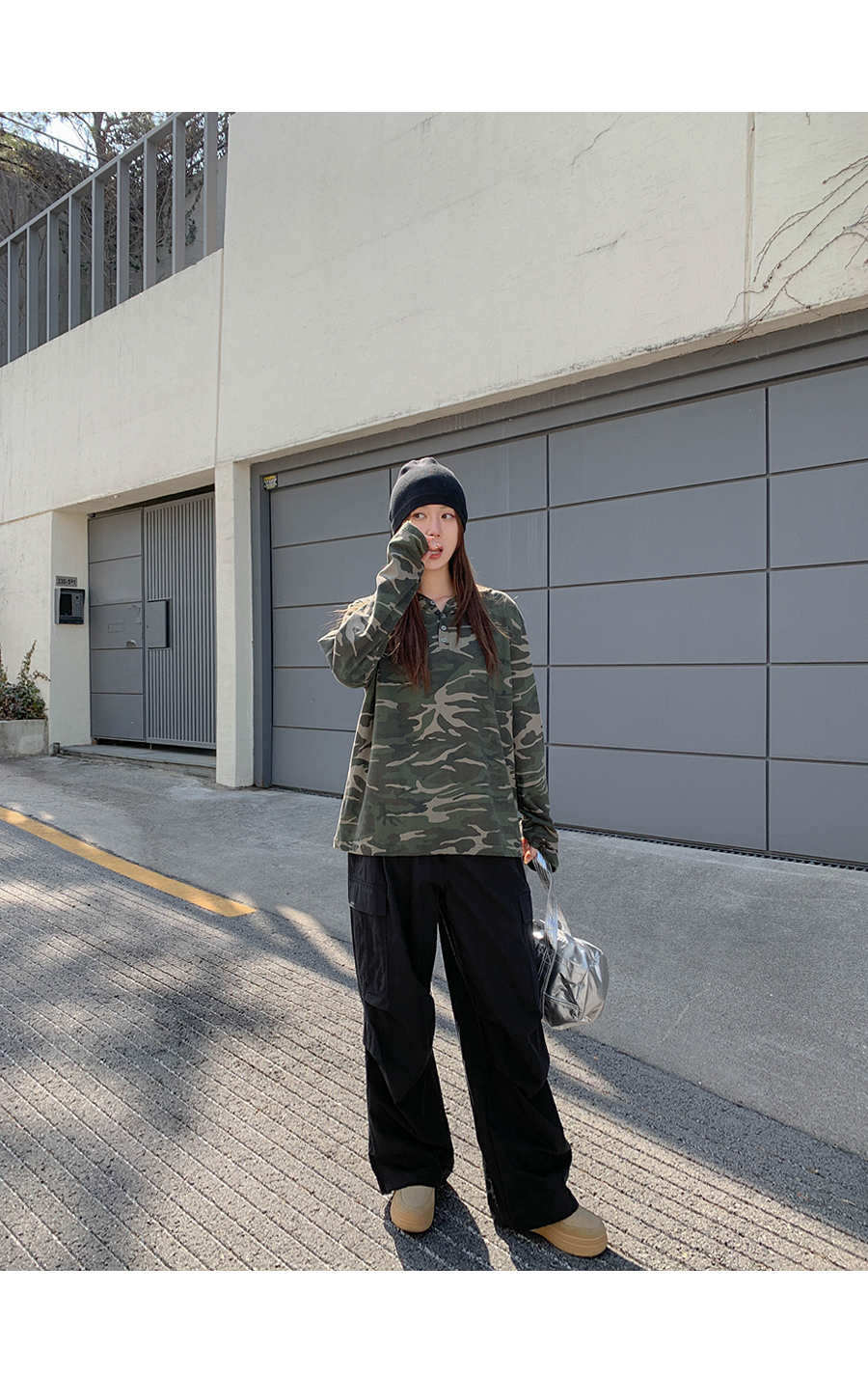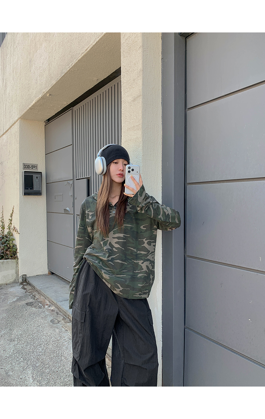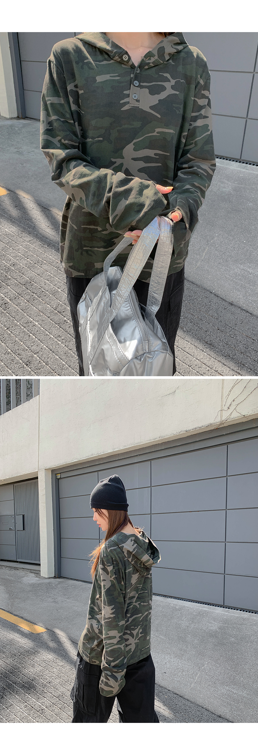[Unisex] Betin Camo Henley Neck Long-sleeve Hoodie