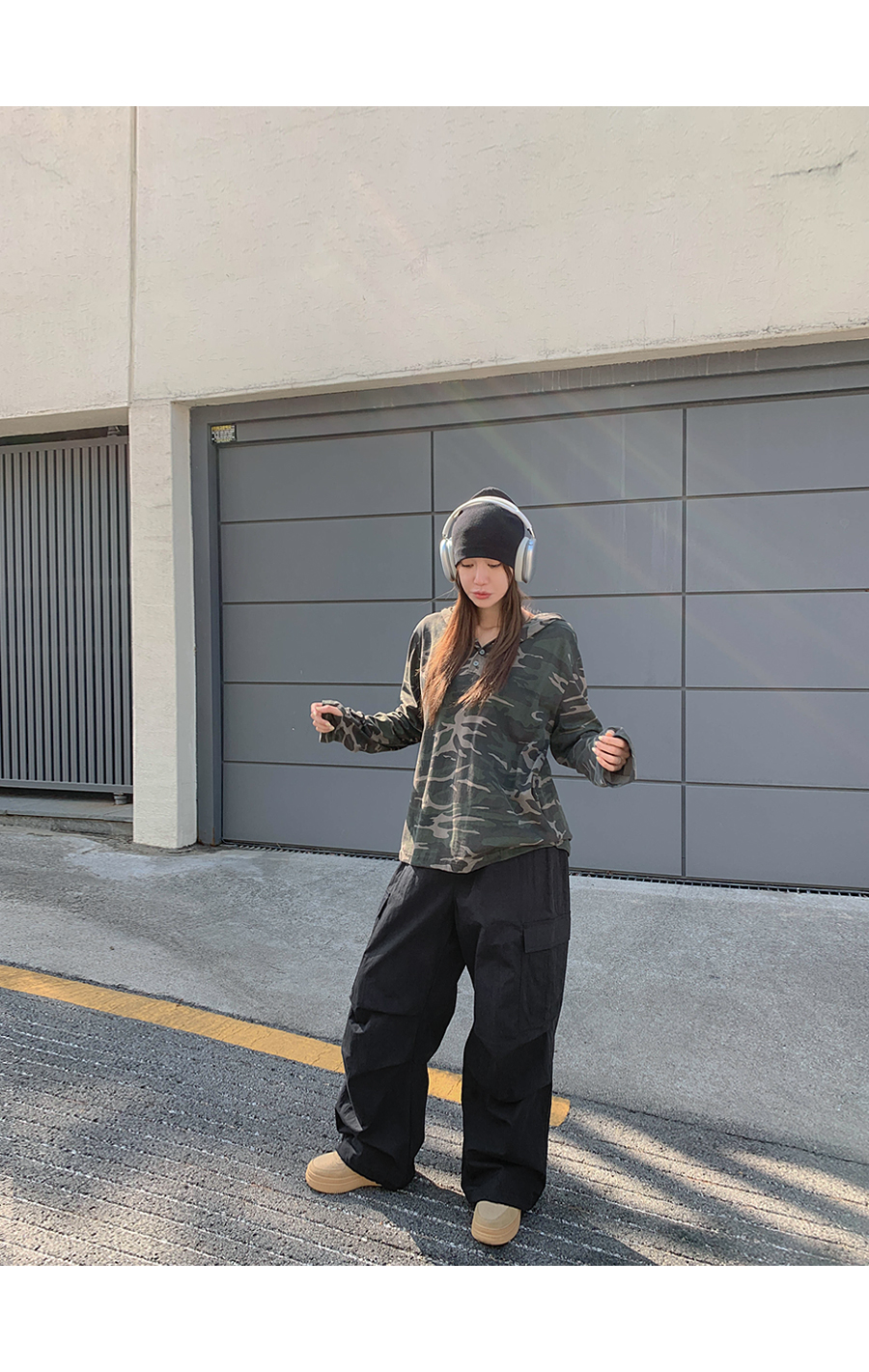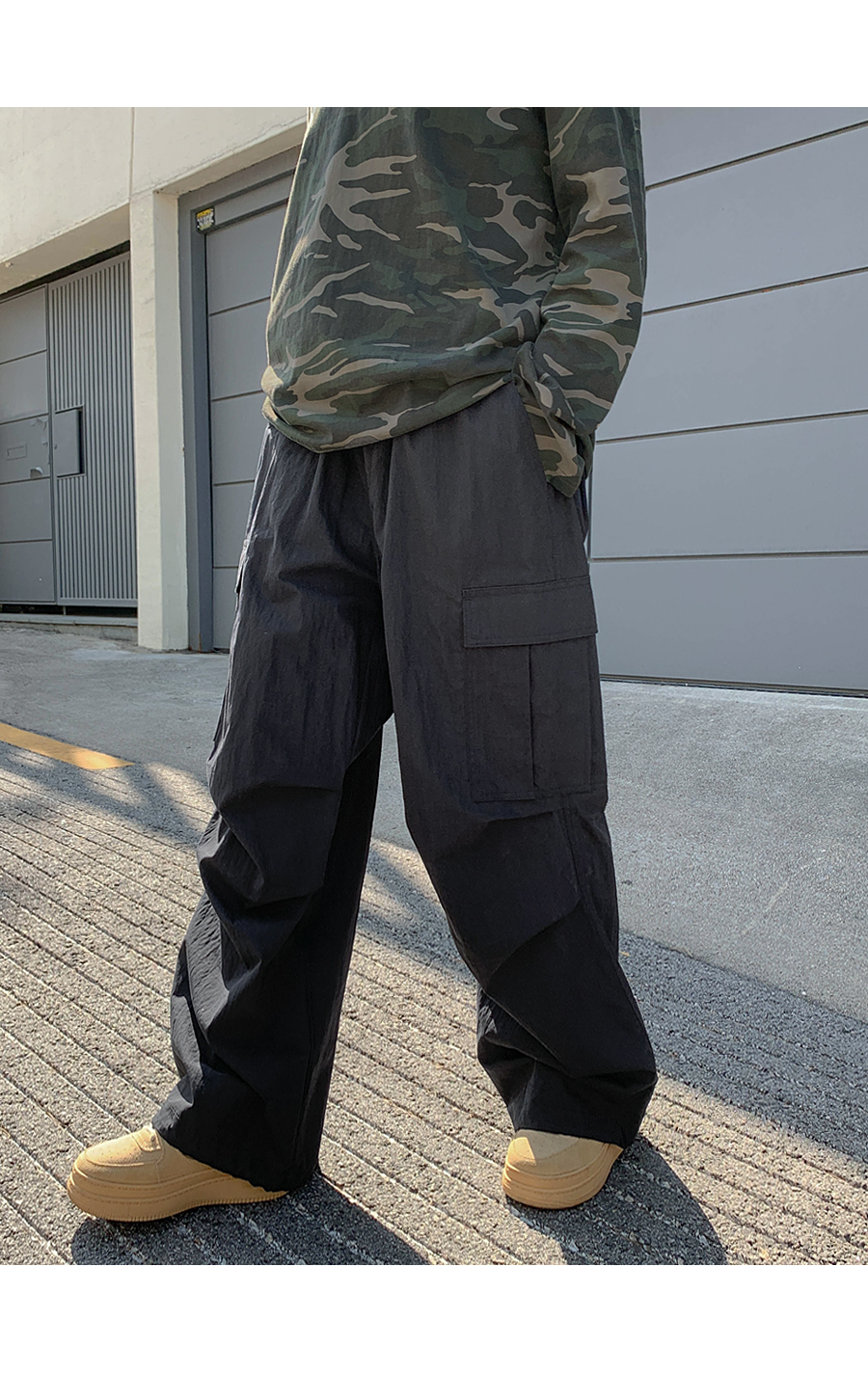 [20% off special sale] Pay Nylon Cargo two-way pintuck wide banding pants