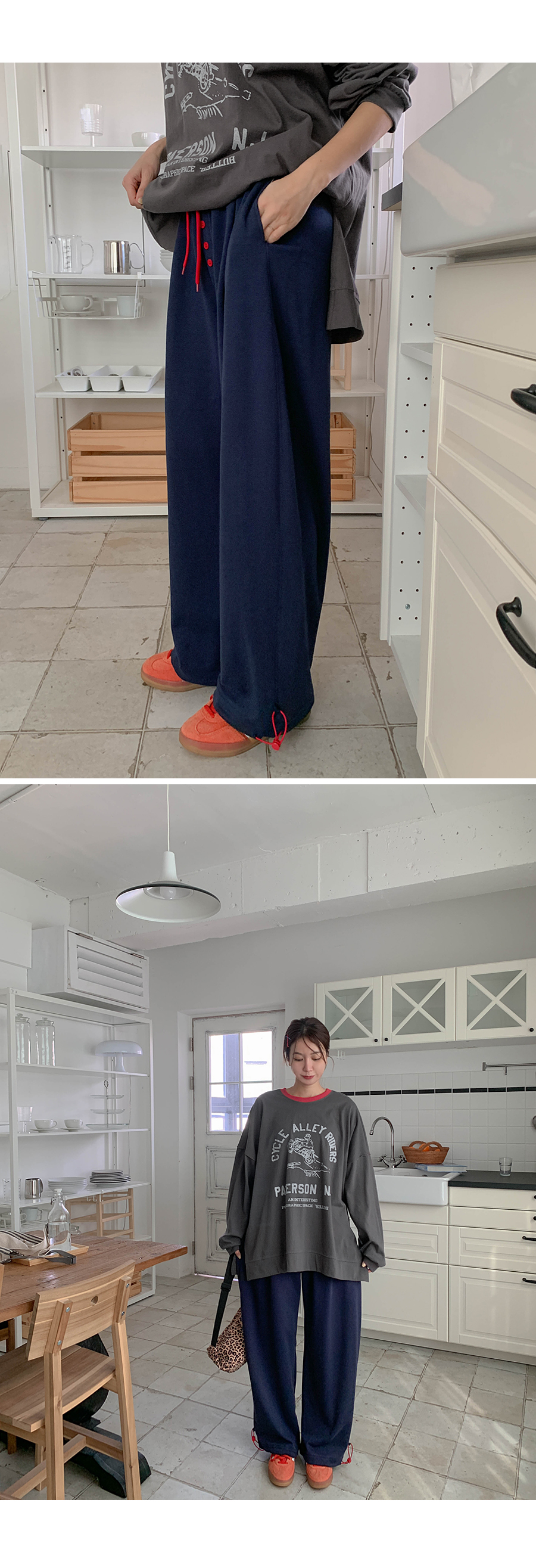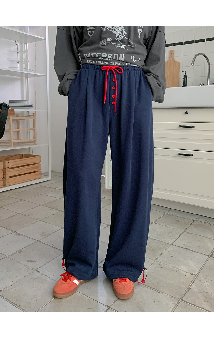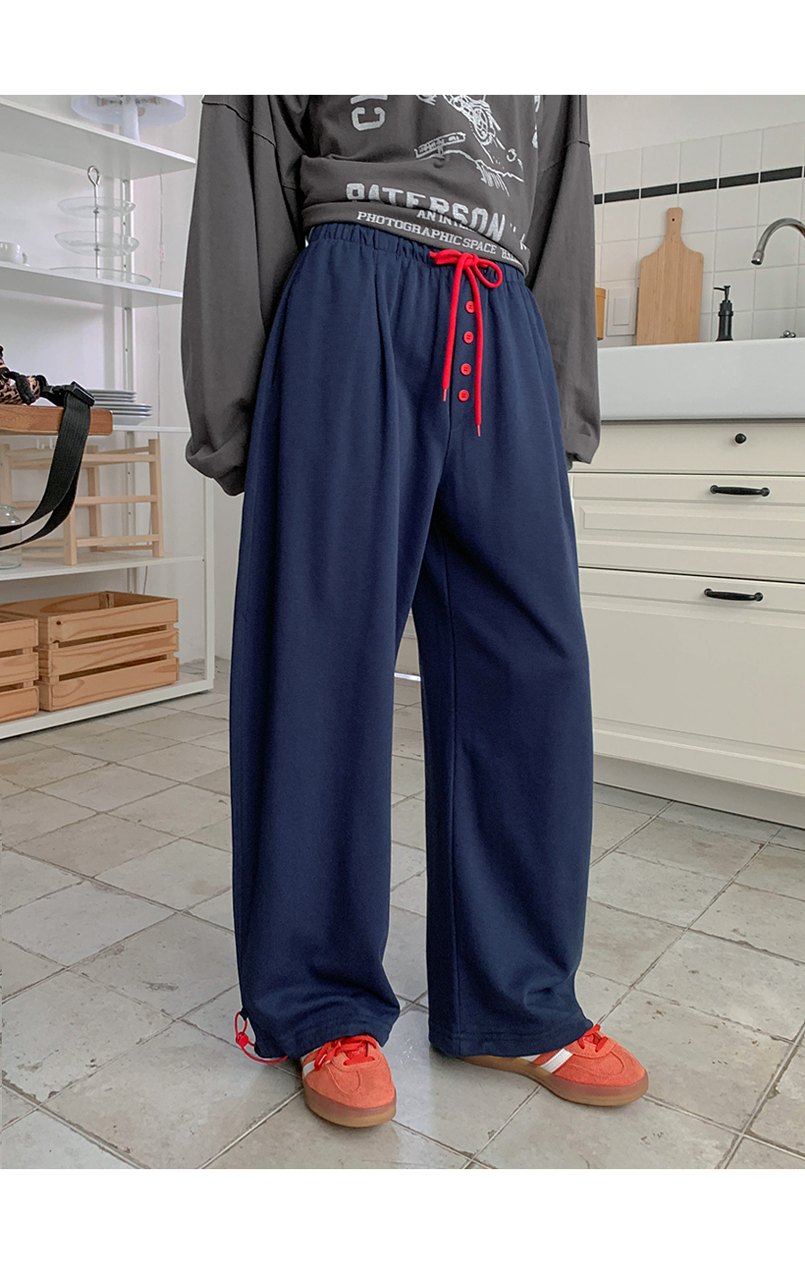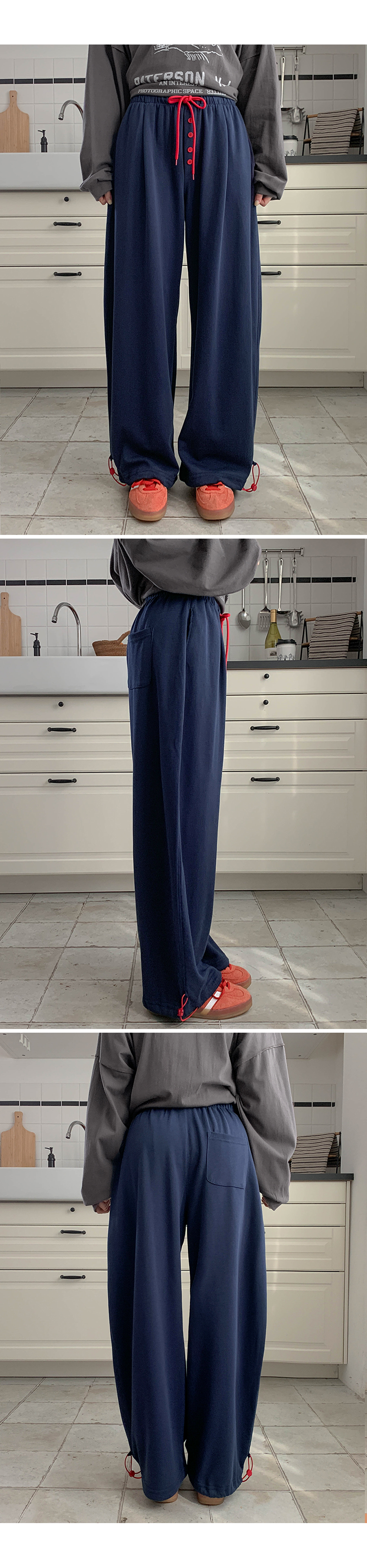 Spring color combination button wide training pants