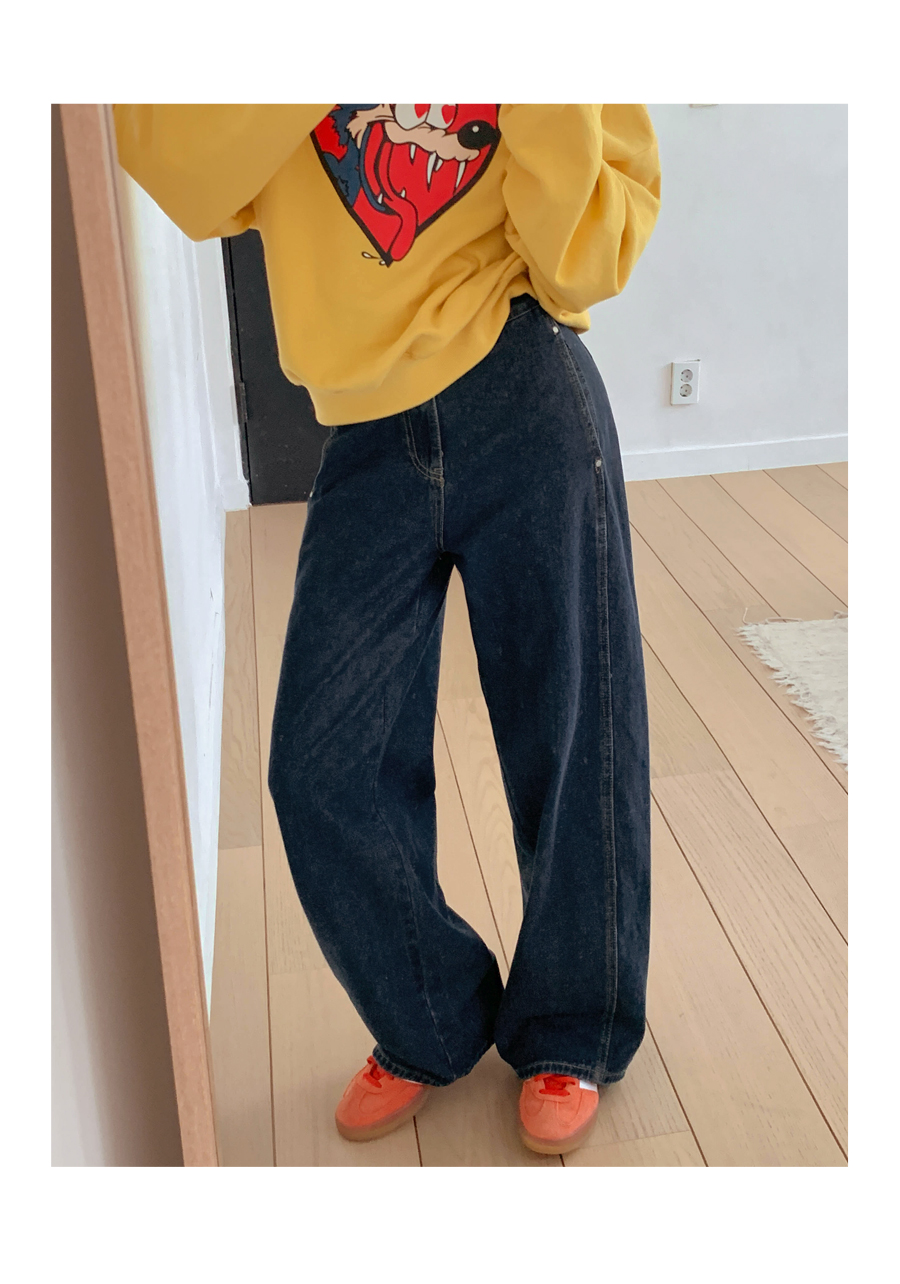Fleece Curved Cut Denim Wide Pants (Short/Basic/Long)