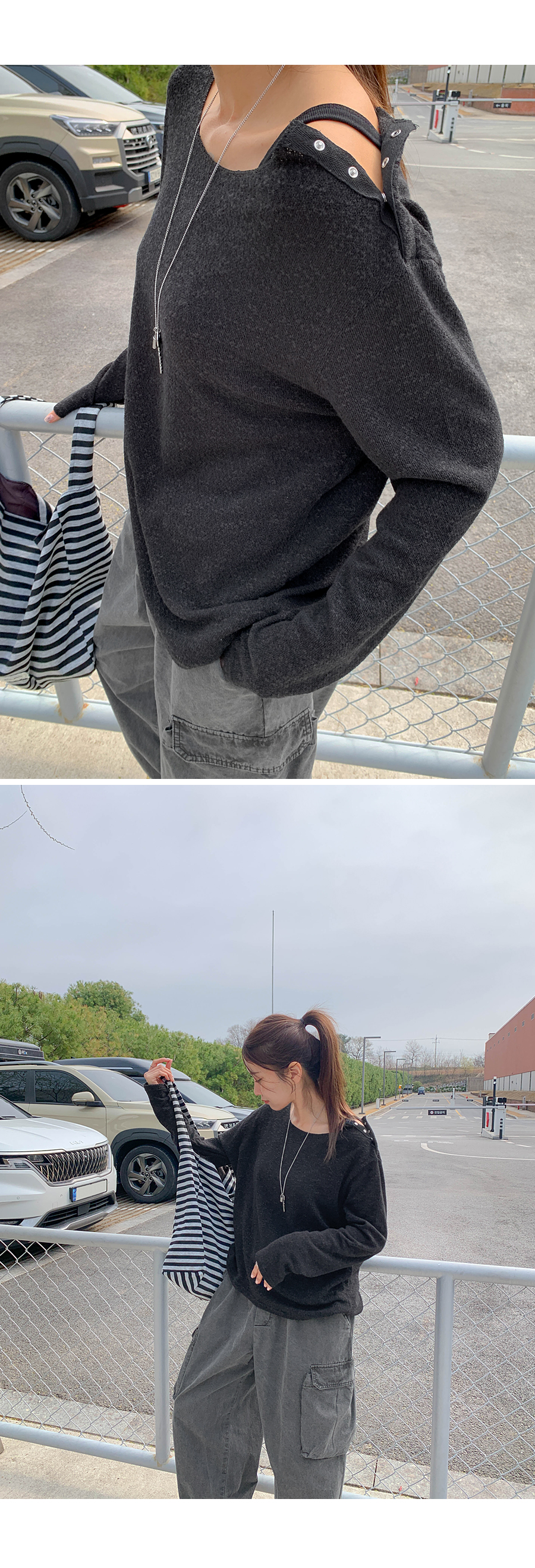 Haven Rivet Button Asymmetrical Boucle Long Sleeve Knit