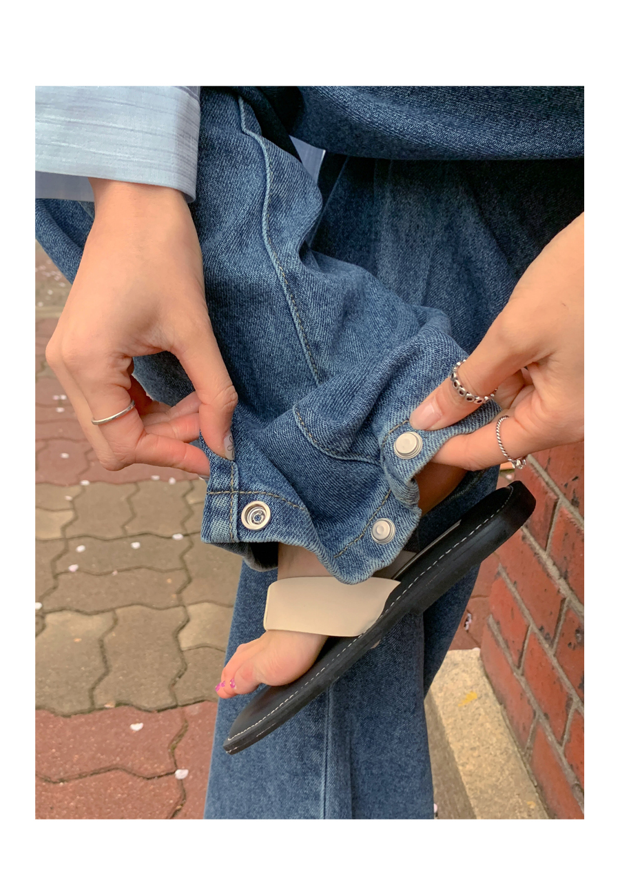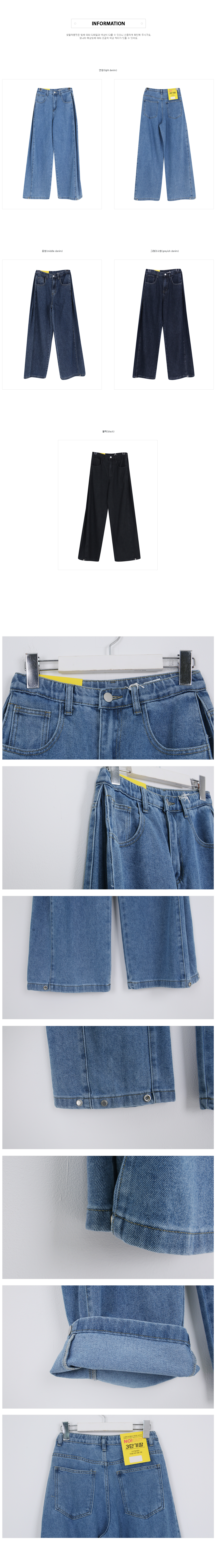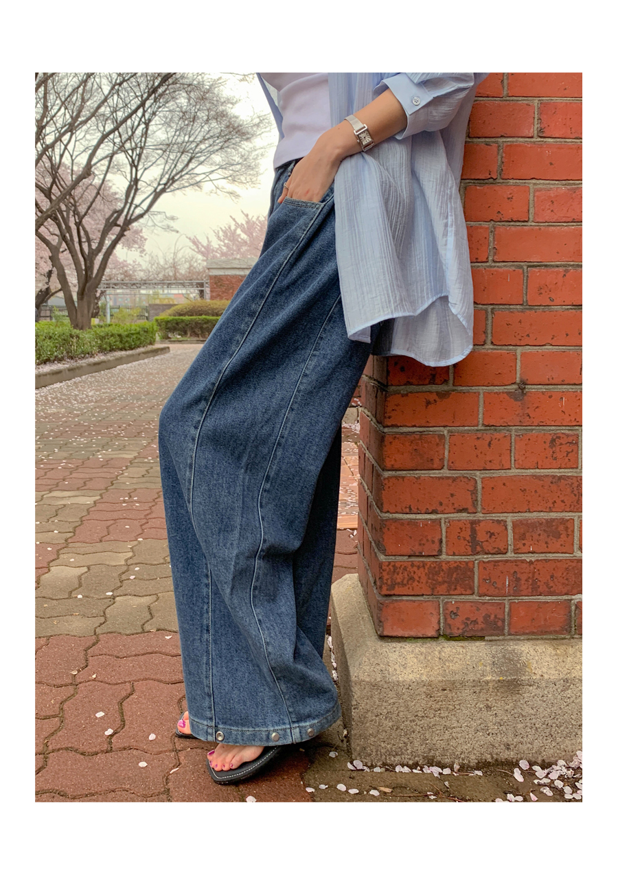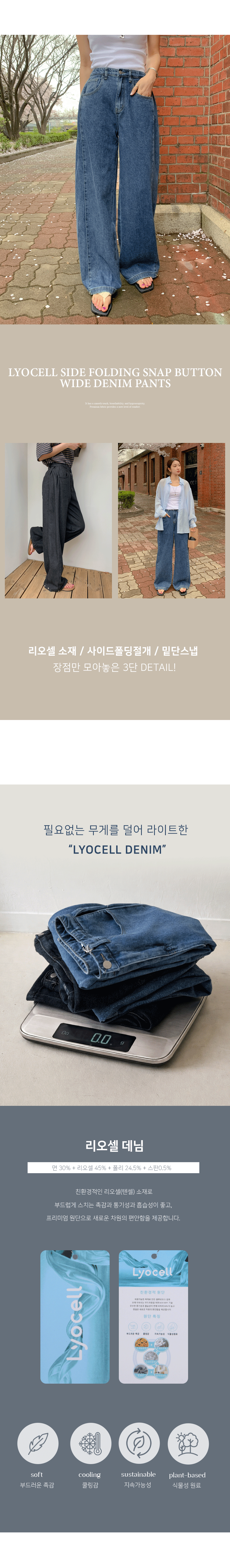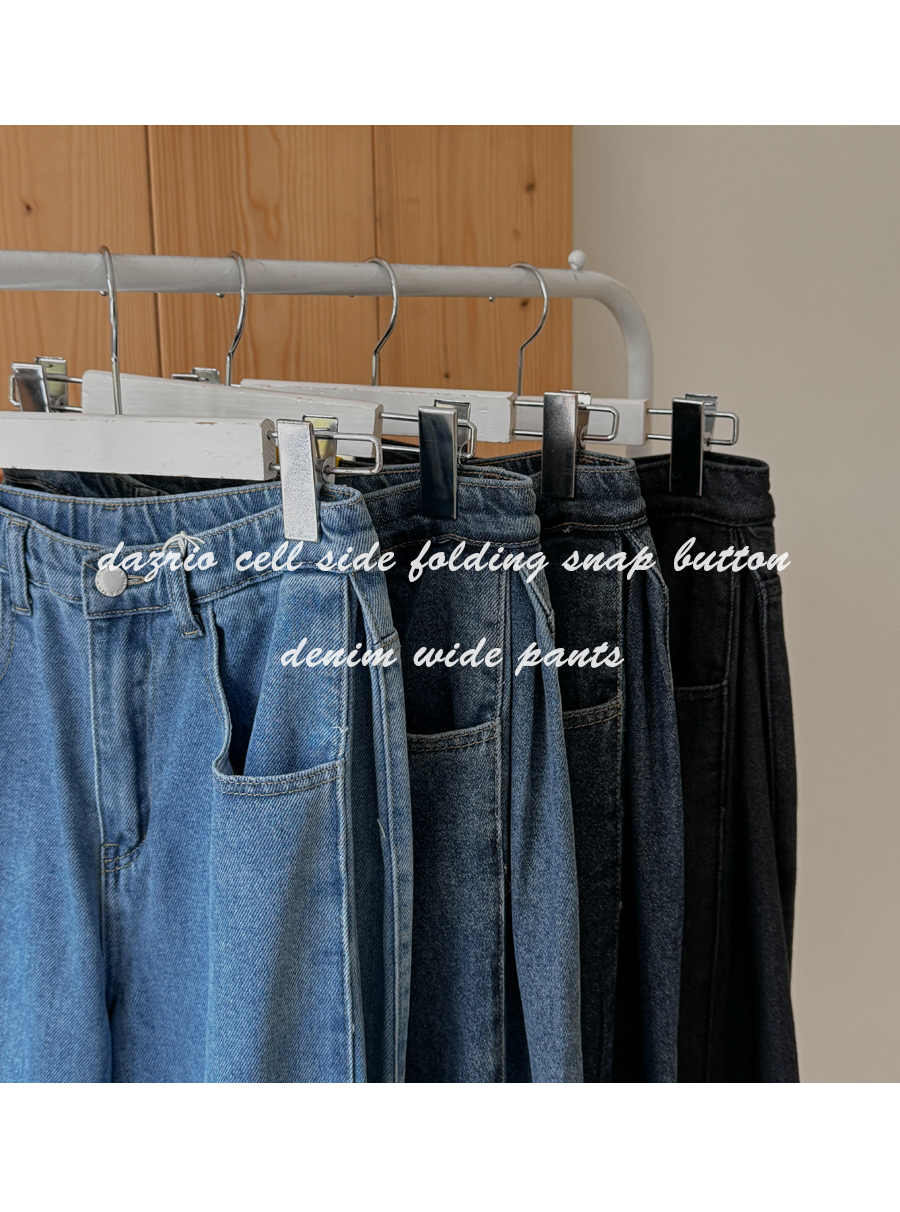 Daz Lyocell Side Folding Snap Button Denim Wide Pants (Short/Basic/Long)