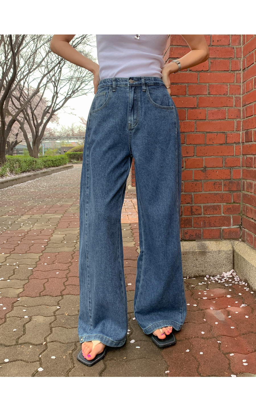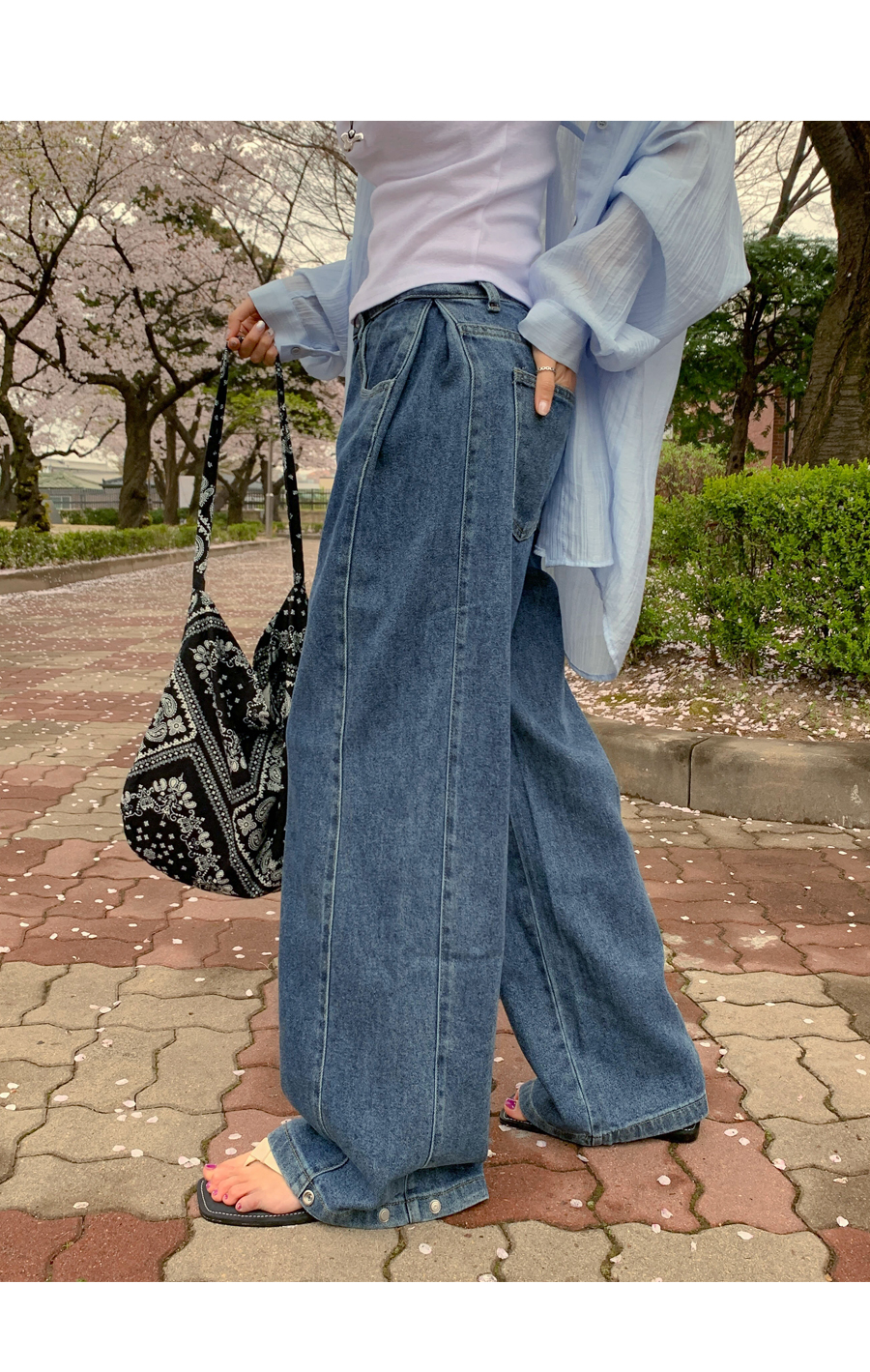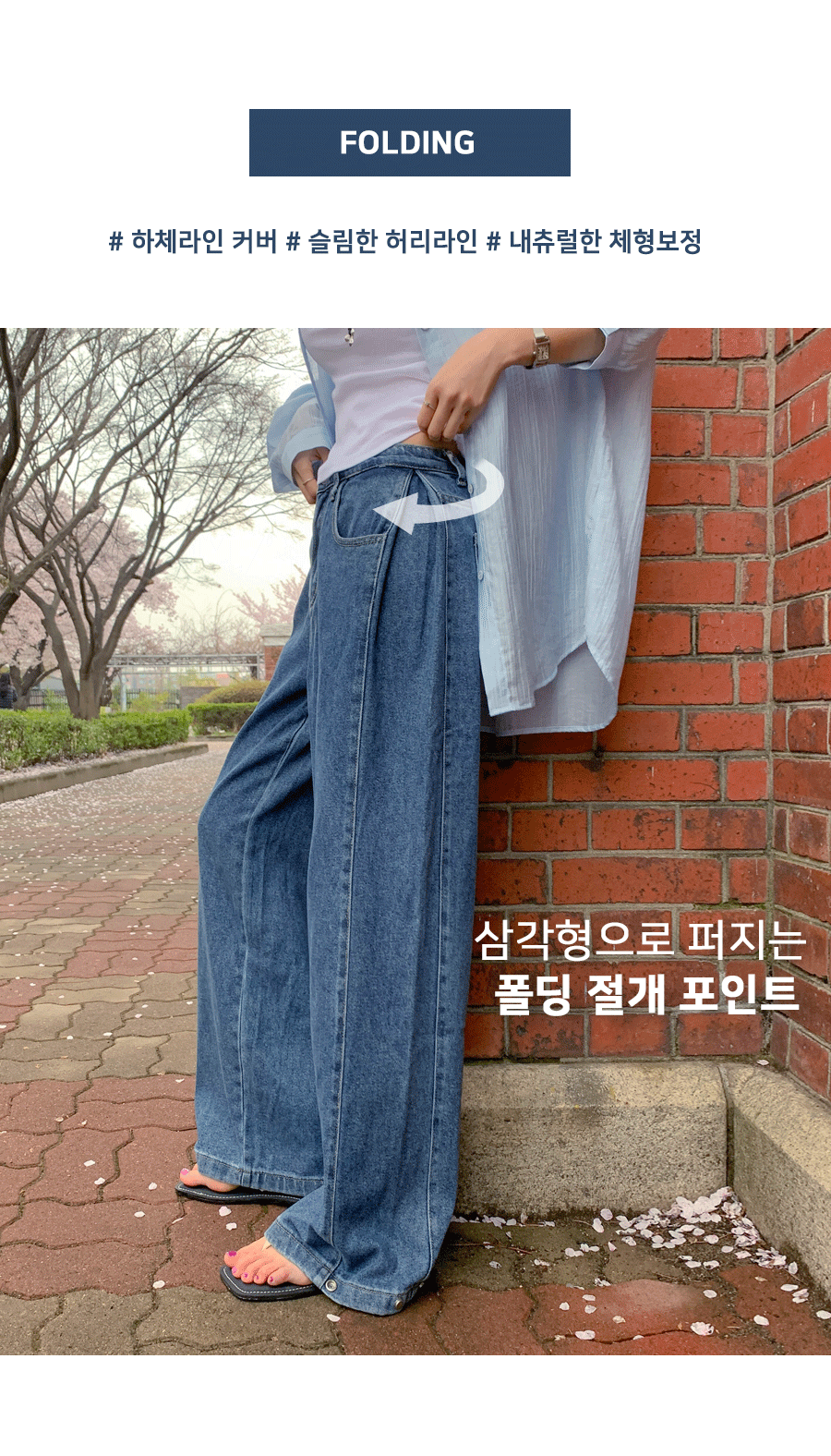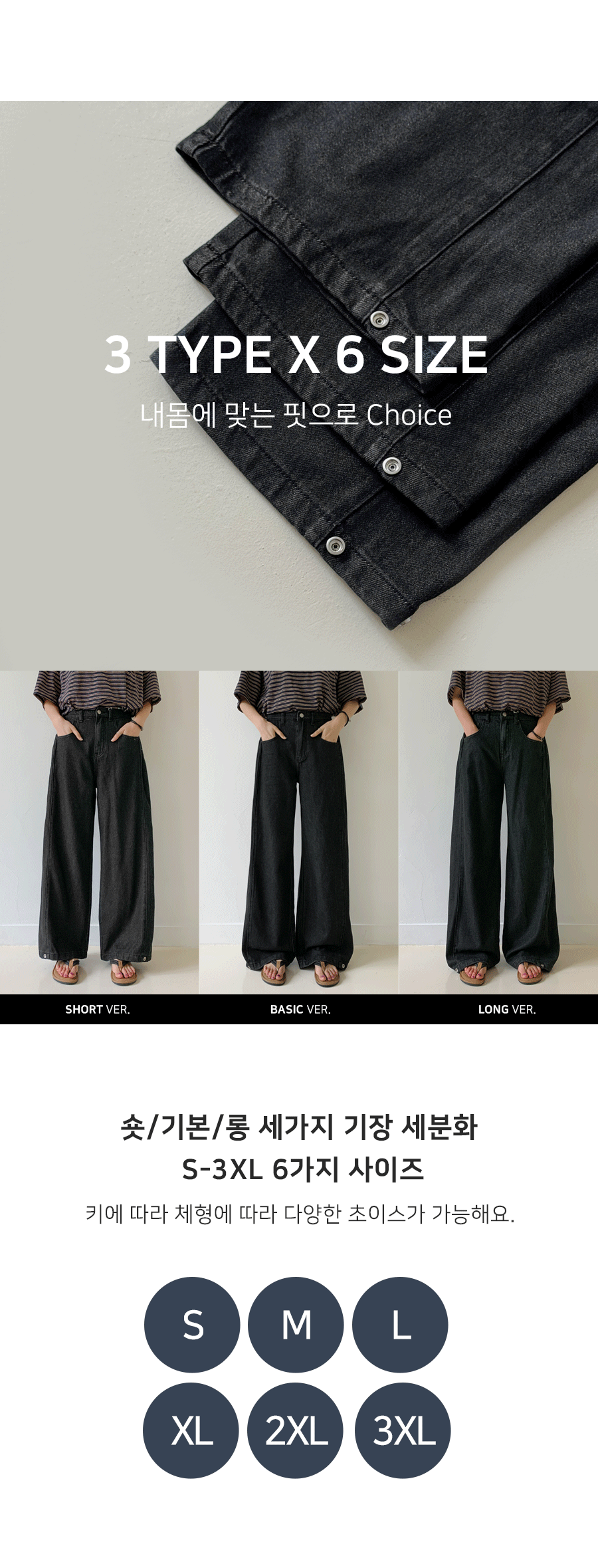 Daz Lyocell Side Folding Snap Button Denim Wide Pants (Short/Basic/Long)