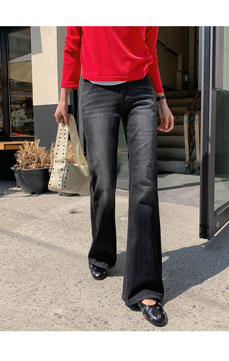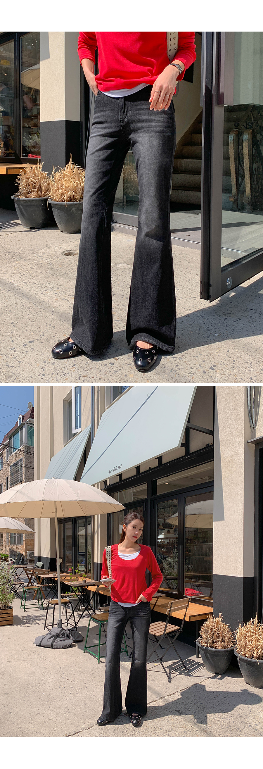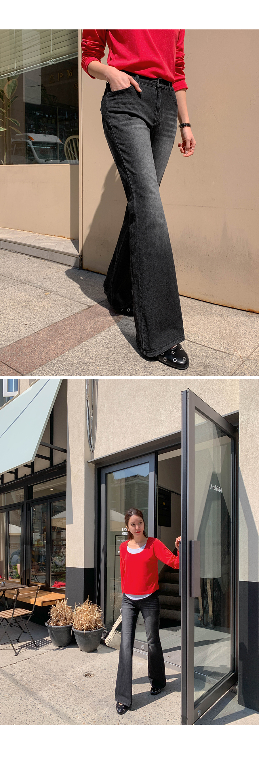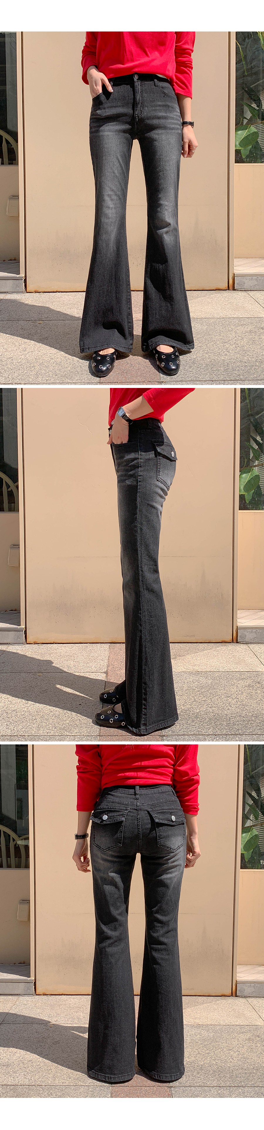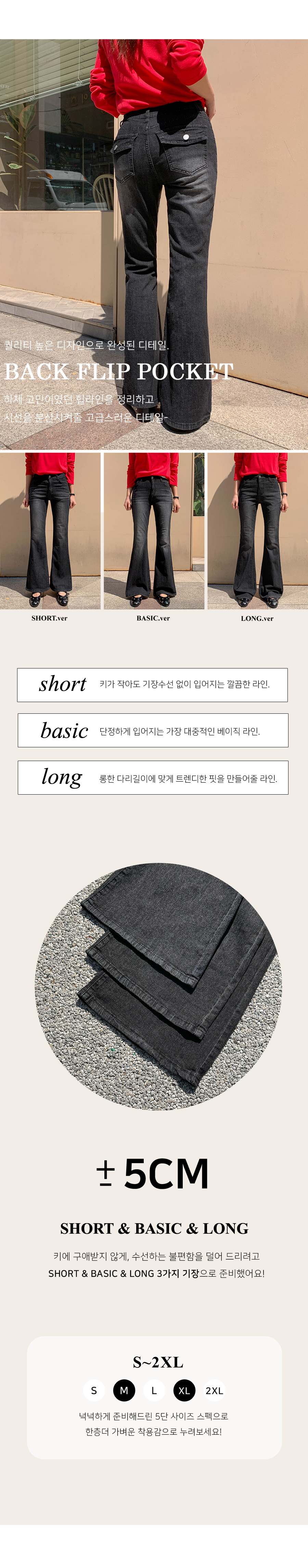 Mook Bag Flip Pocket Cool Denim Banding Bootcut Pants (Short/Basic/Longver)