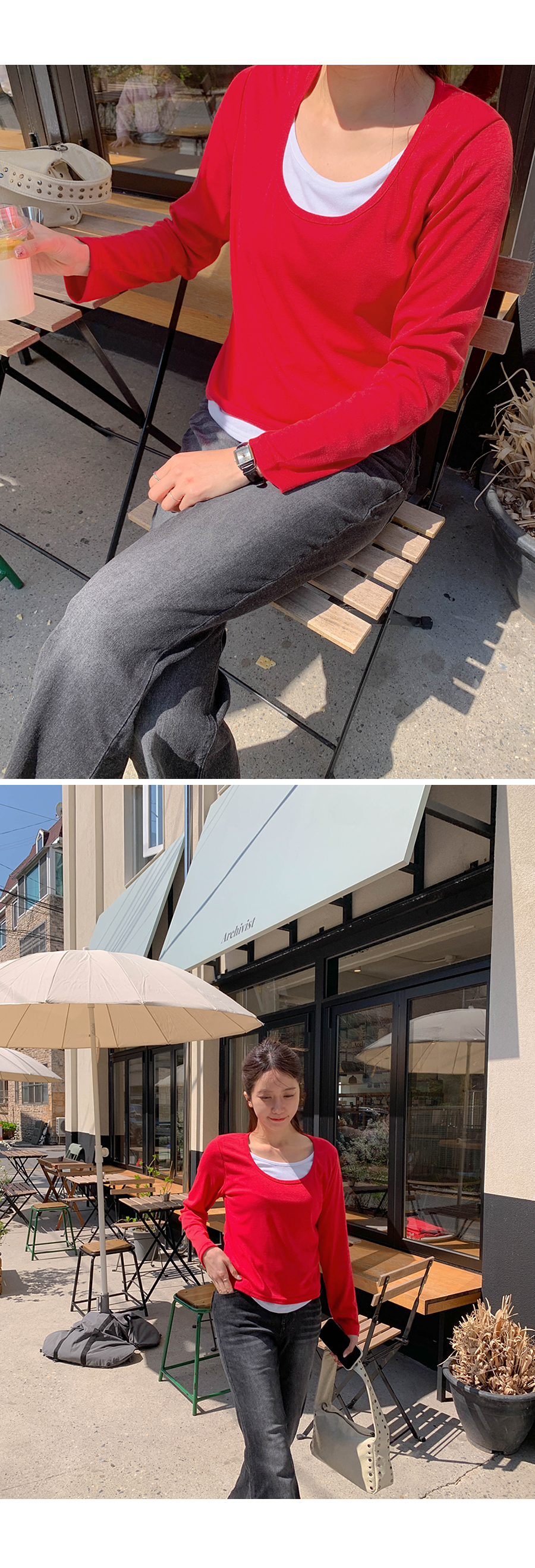 Mari layered U-neck spandex long-sleeved T-shirt