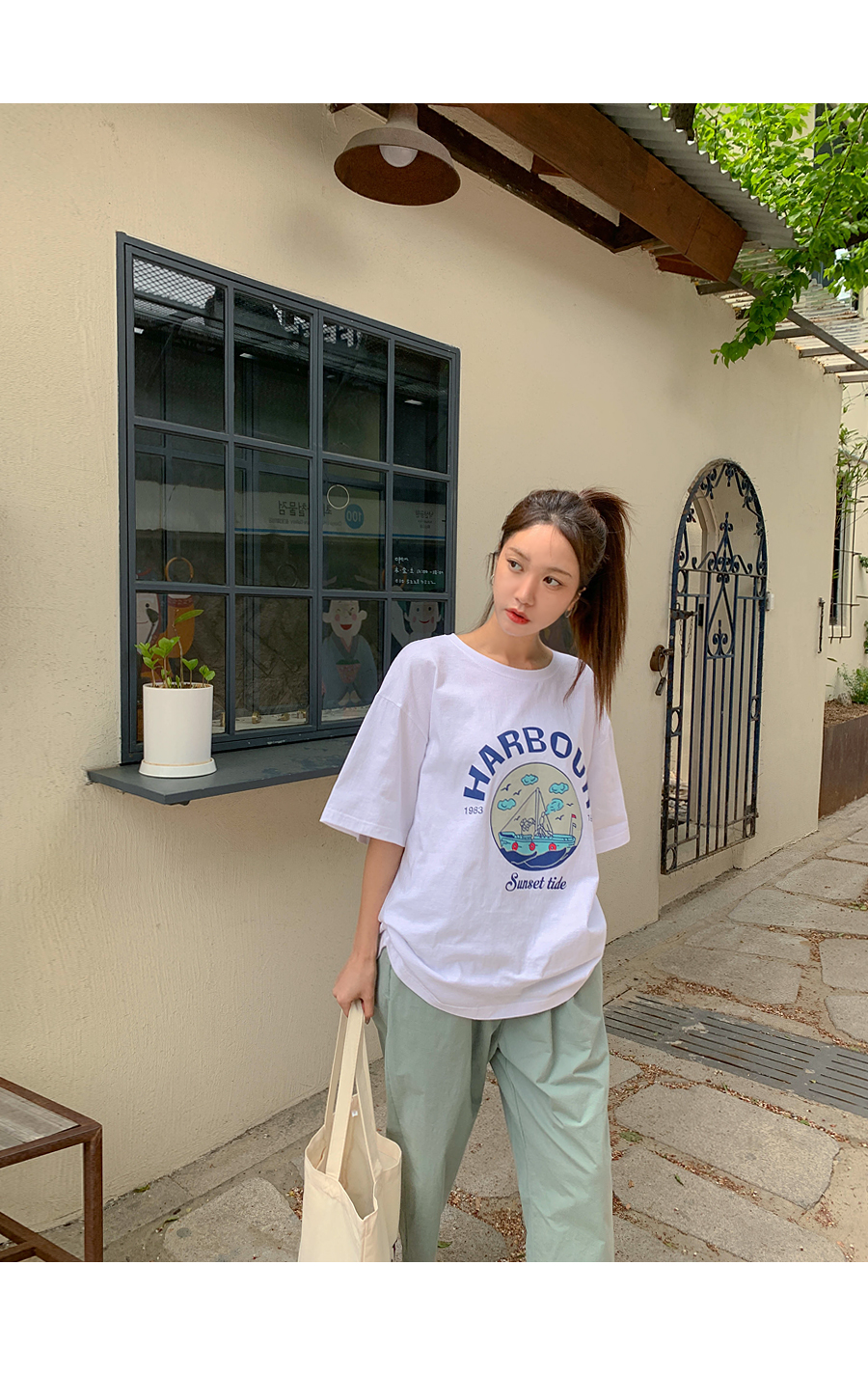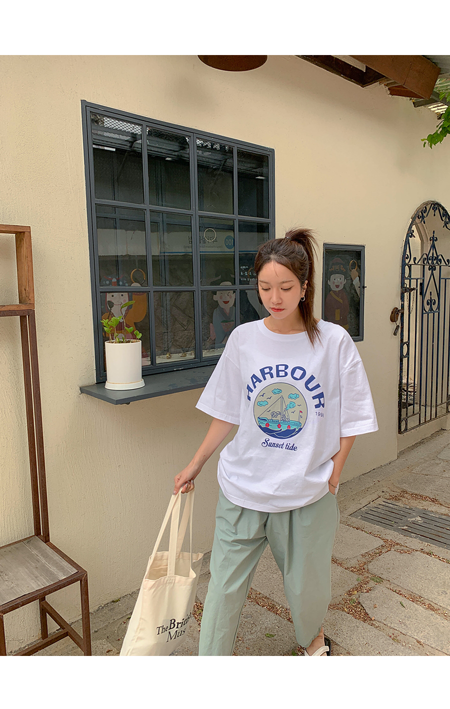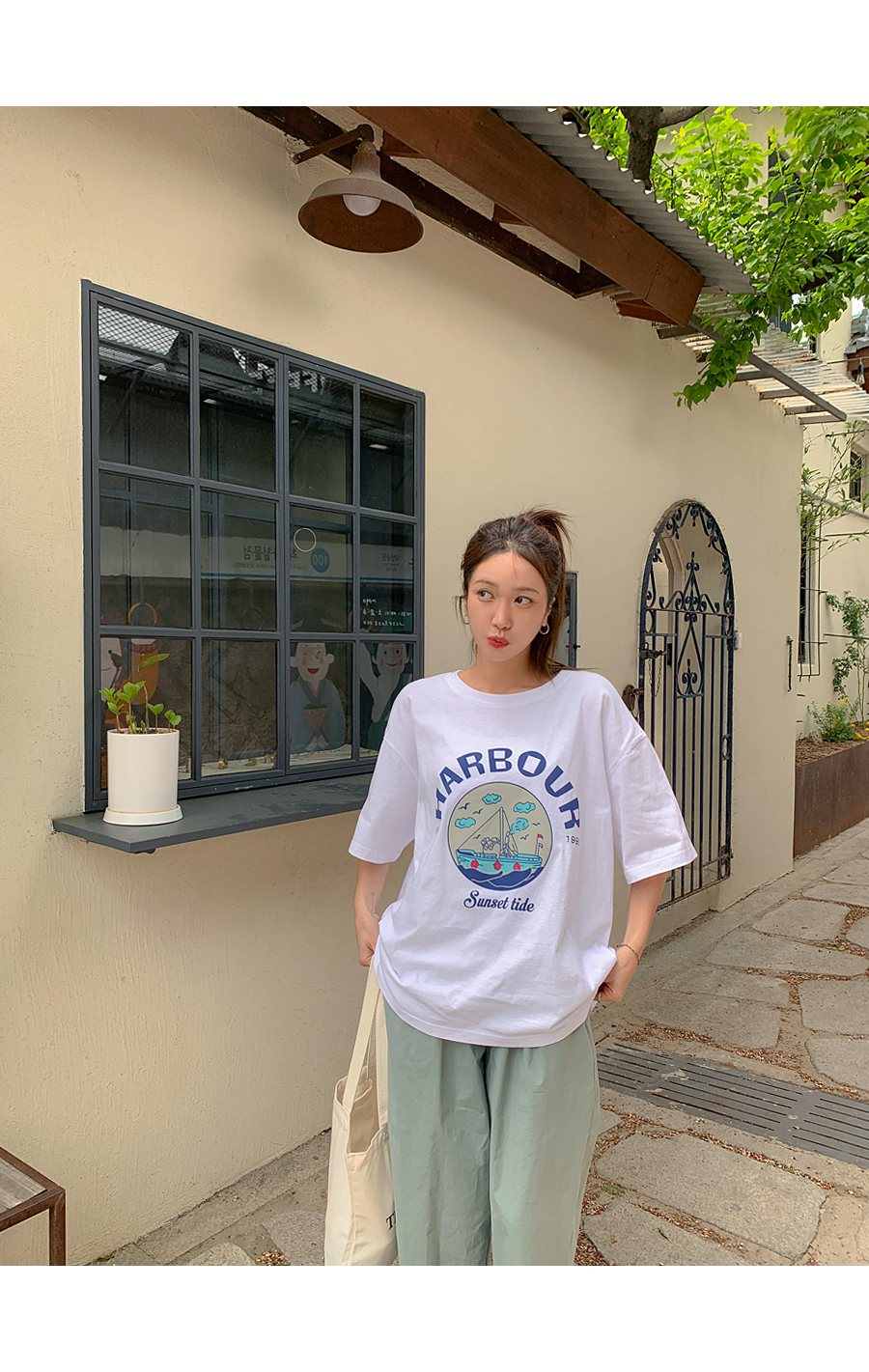 Harbor Print Loose Fit Short Sleeves T-shirt